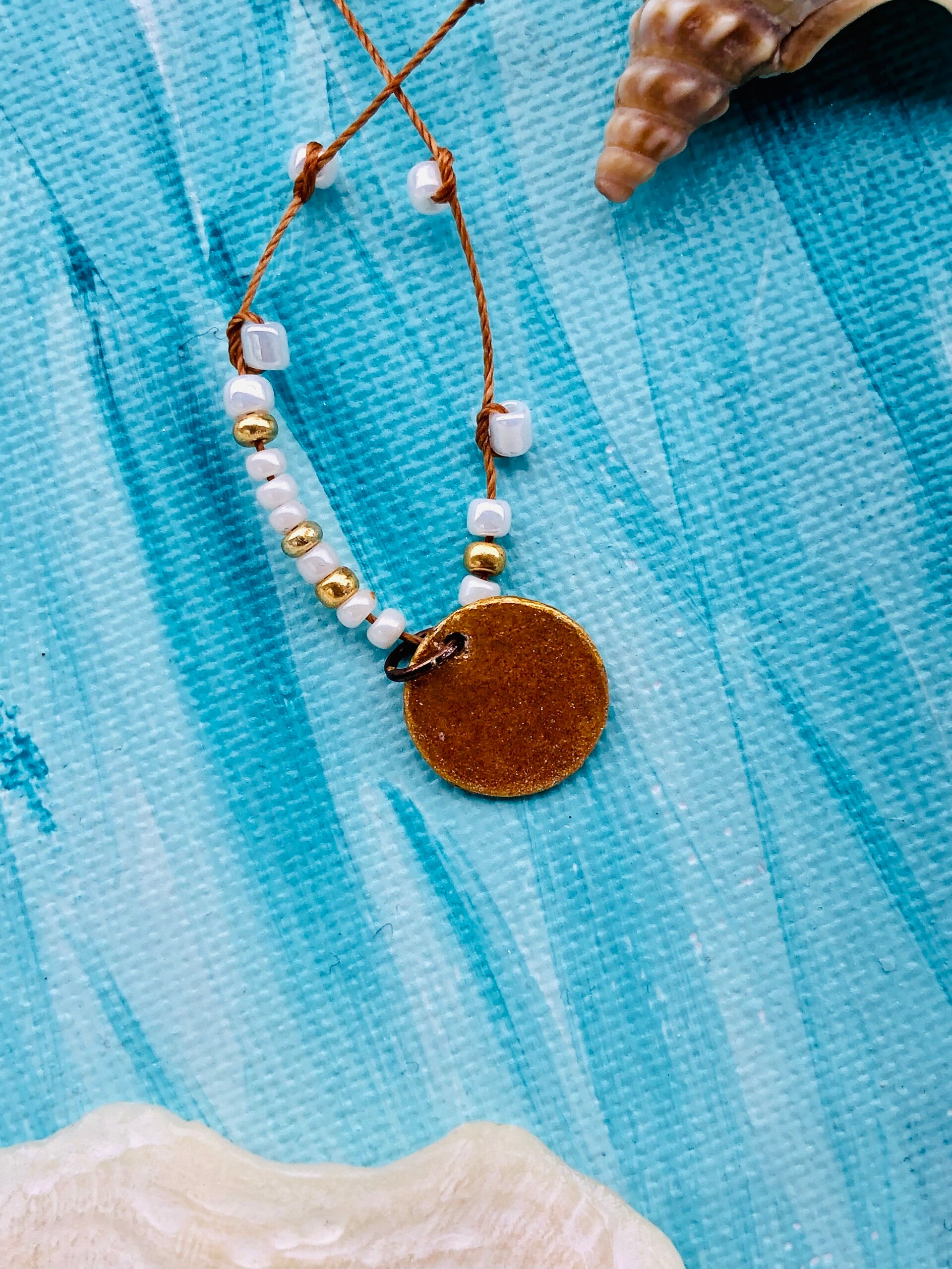 Der Anhänger ist handbemalt und hat einen Durchmesser von ca. 1,3cm.