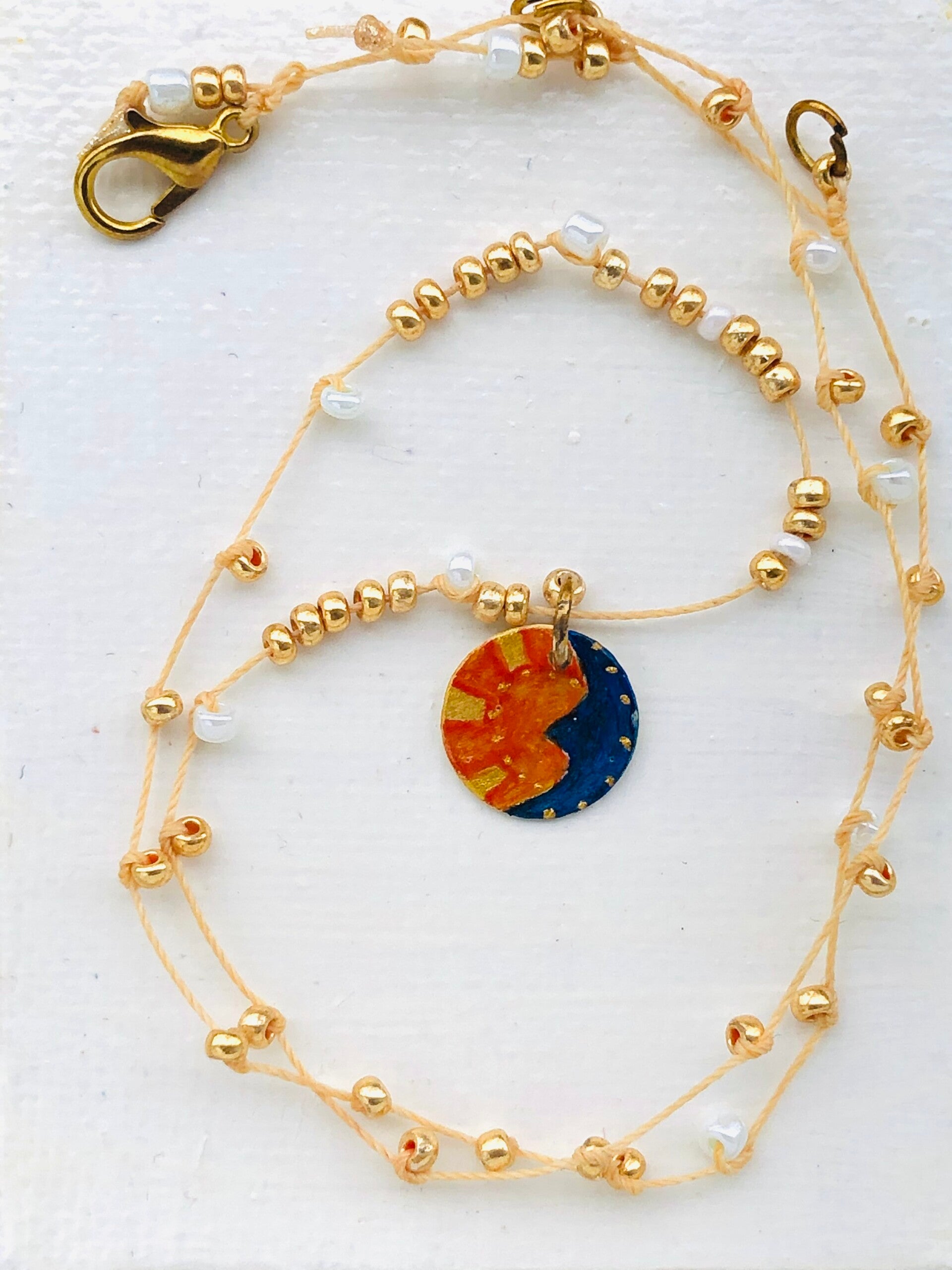 Der Anhänger ist handbemalt und hat einen Durchmesser von ca. 1,3cm.