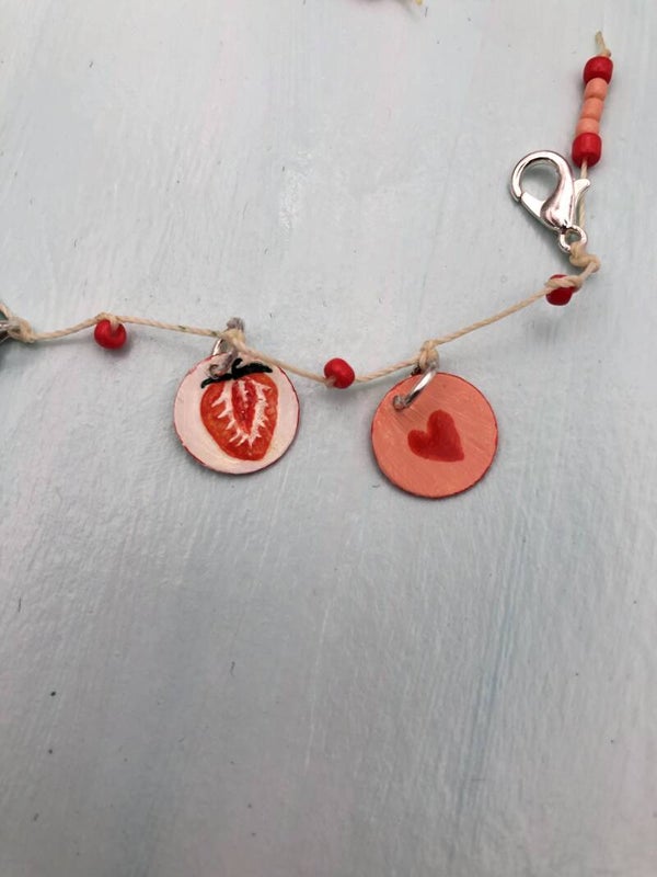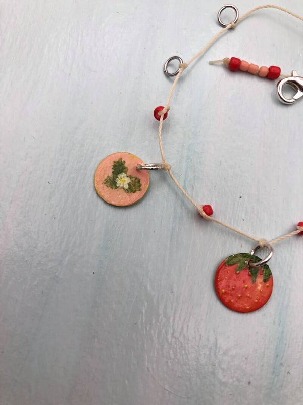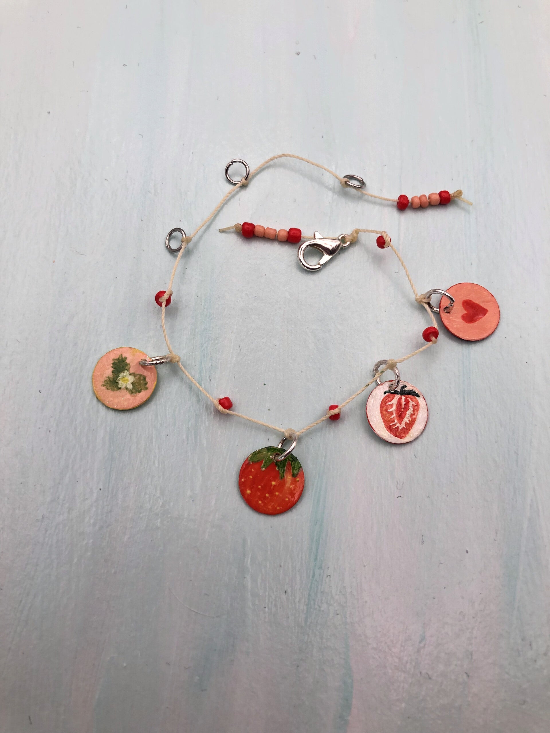 Armband mit vier Anhängern zum Thema Erdebeere (12-17cm)