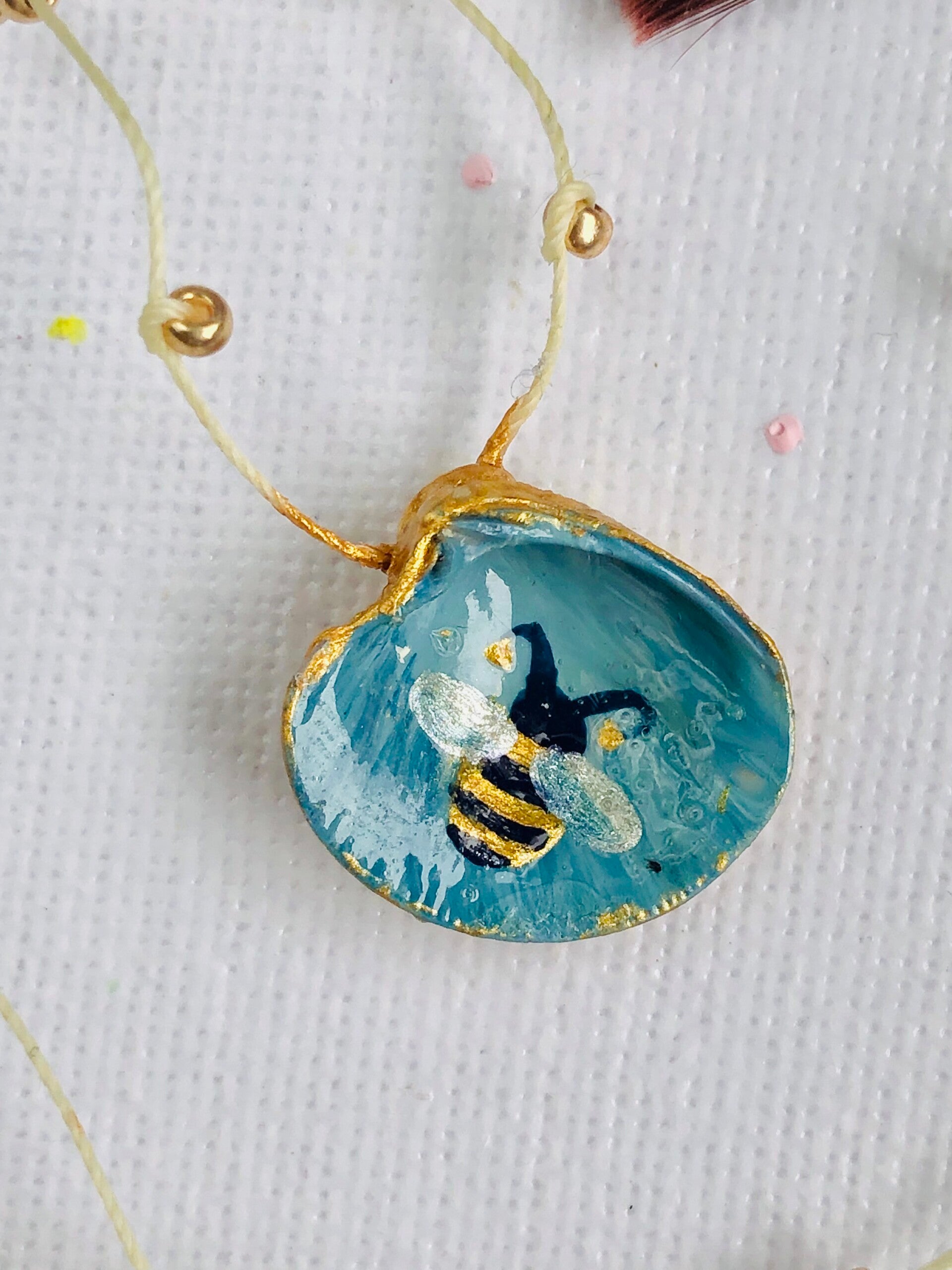 Die Muschel ist handbemalt.
