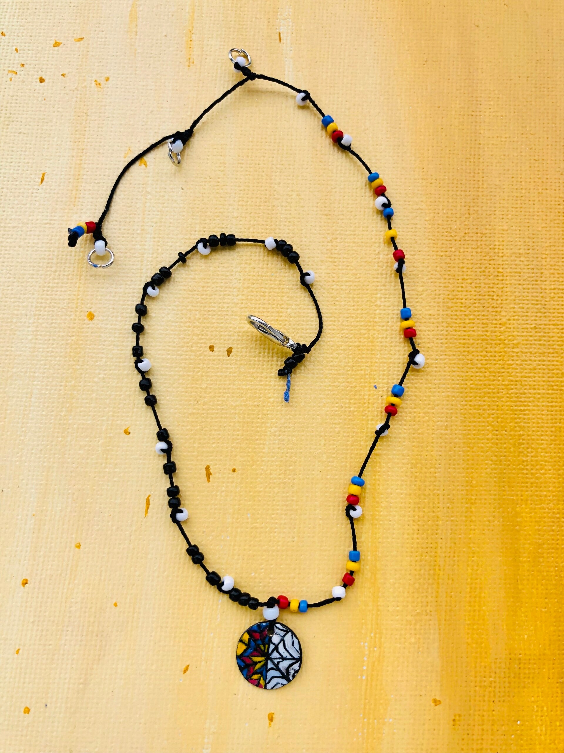Der Anhänger ist handbemalt und hat einen Durchmesser von ca. 1,3cm.