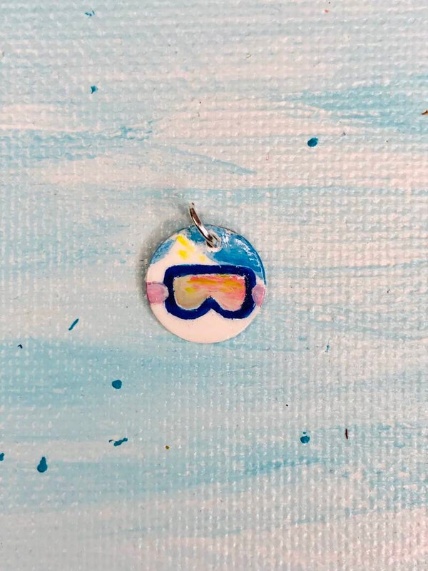 Der Anhänger ist handbemalt und hat einen Durchmesser von 1,3 cm.