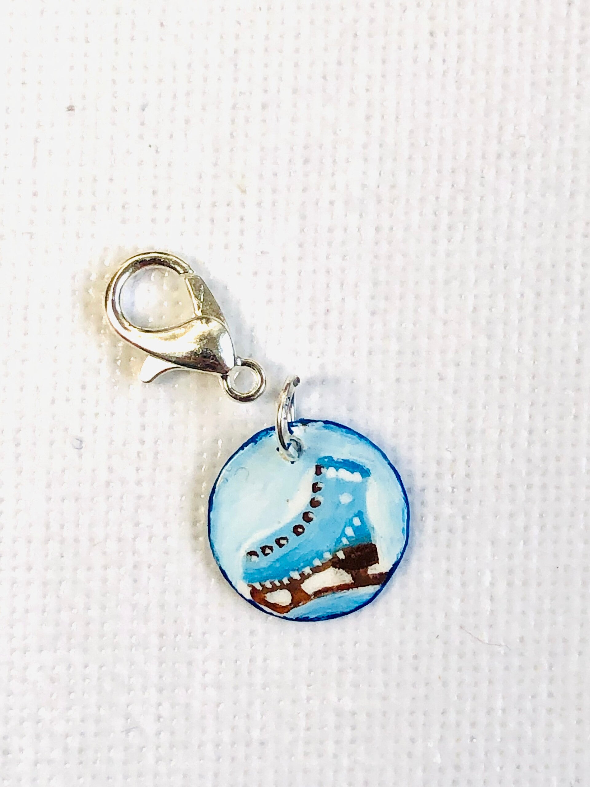 Der Anhänger ist handbemalt und hat einen Durchmesser von 1,3 cm.