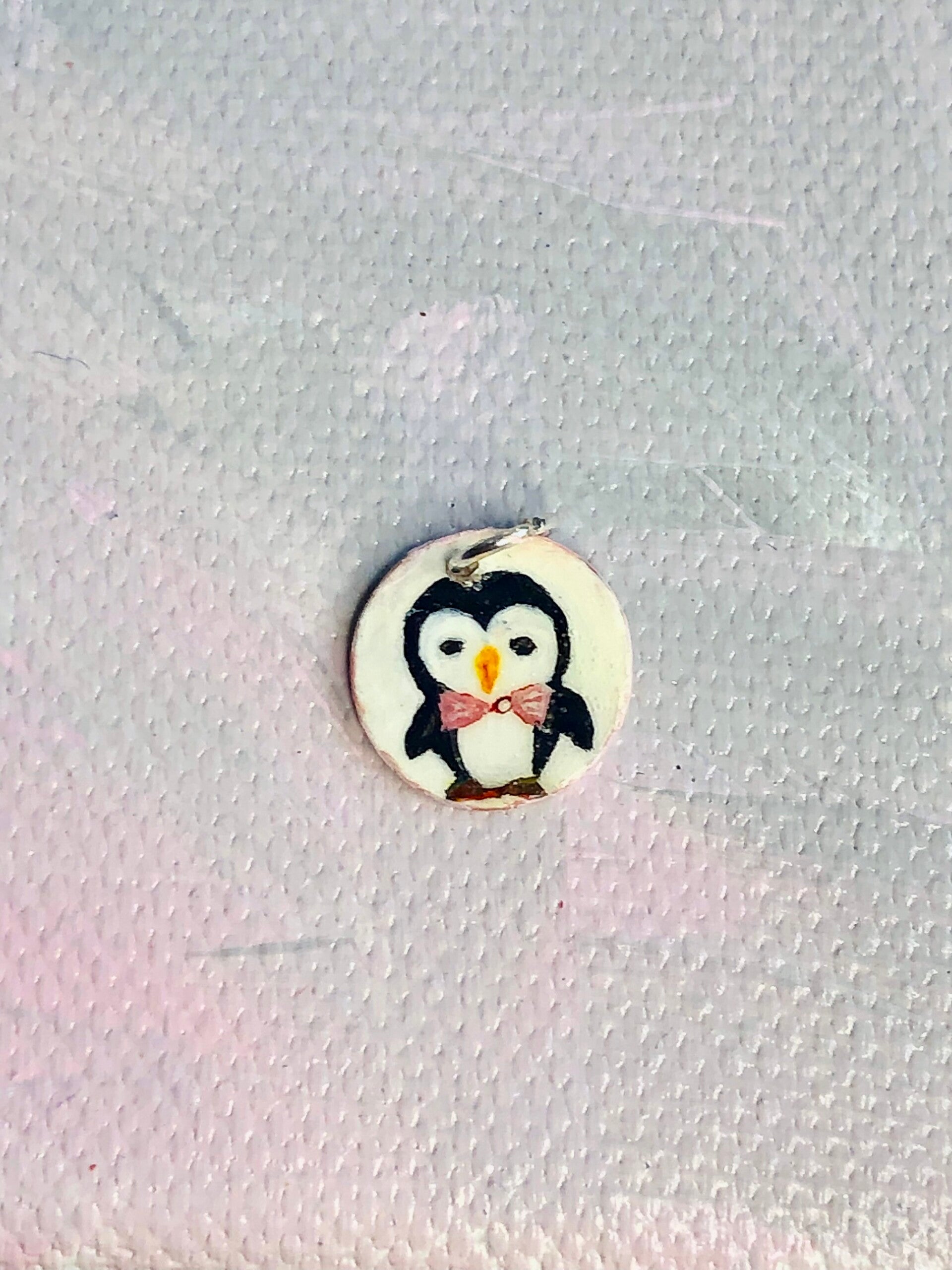 Der Anhänger ist handbemalt und hat einen Durchmesser von 1,3 cm.