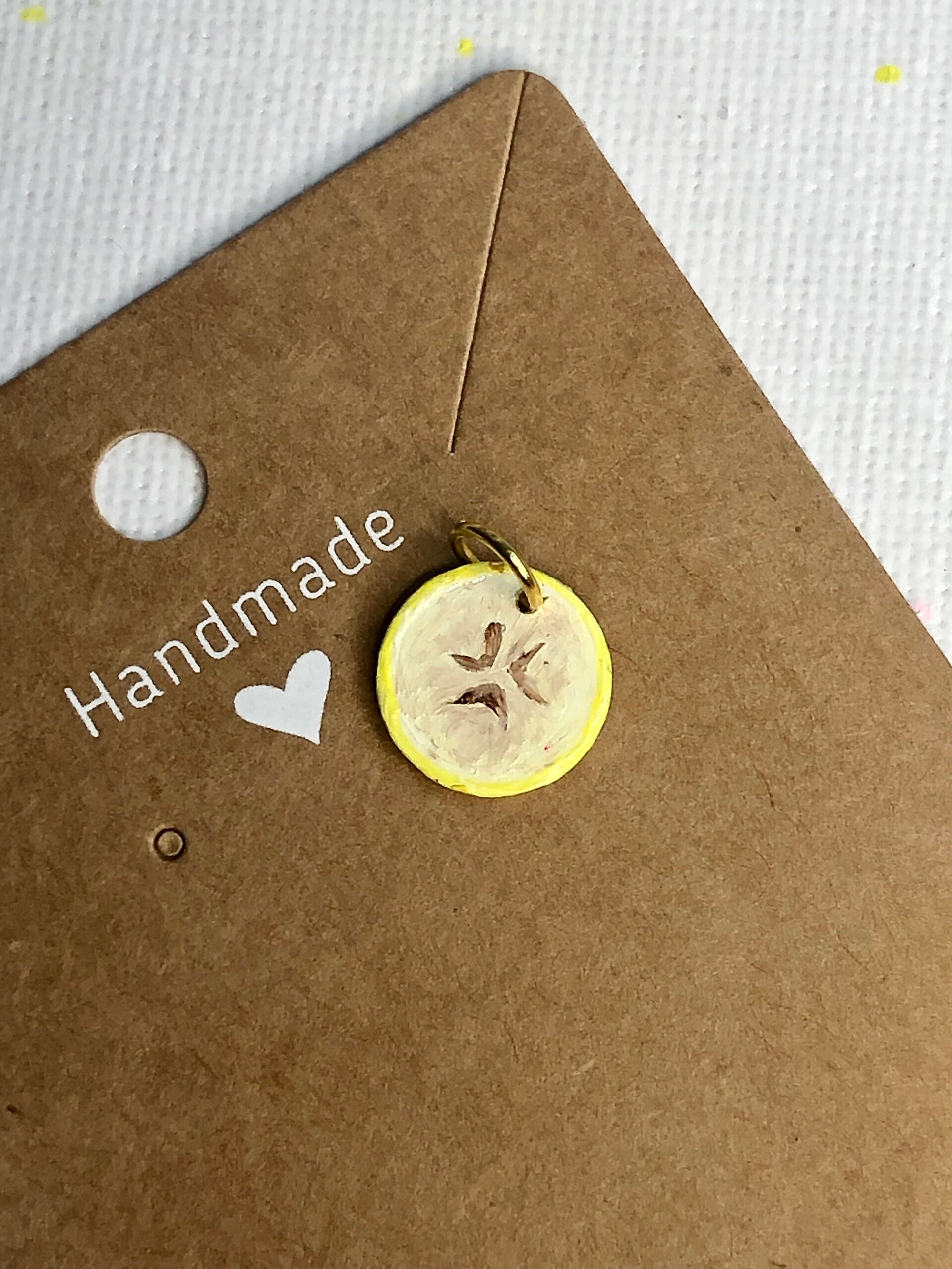 Der Anhänger ist handbemalt und hat einen Durchmesser von 1,3 cm.