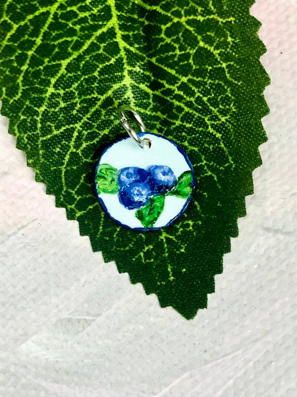Der Anhänger ist handbemalt und hat einen Durchmesser von 1,3 cm.