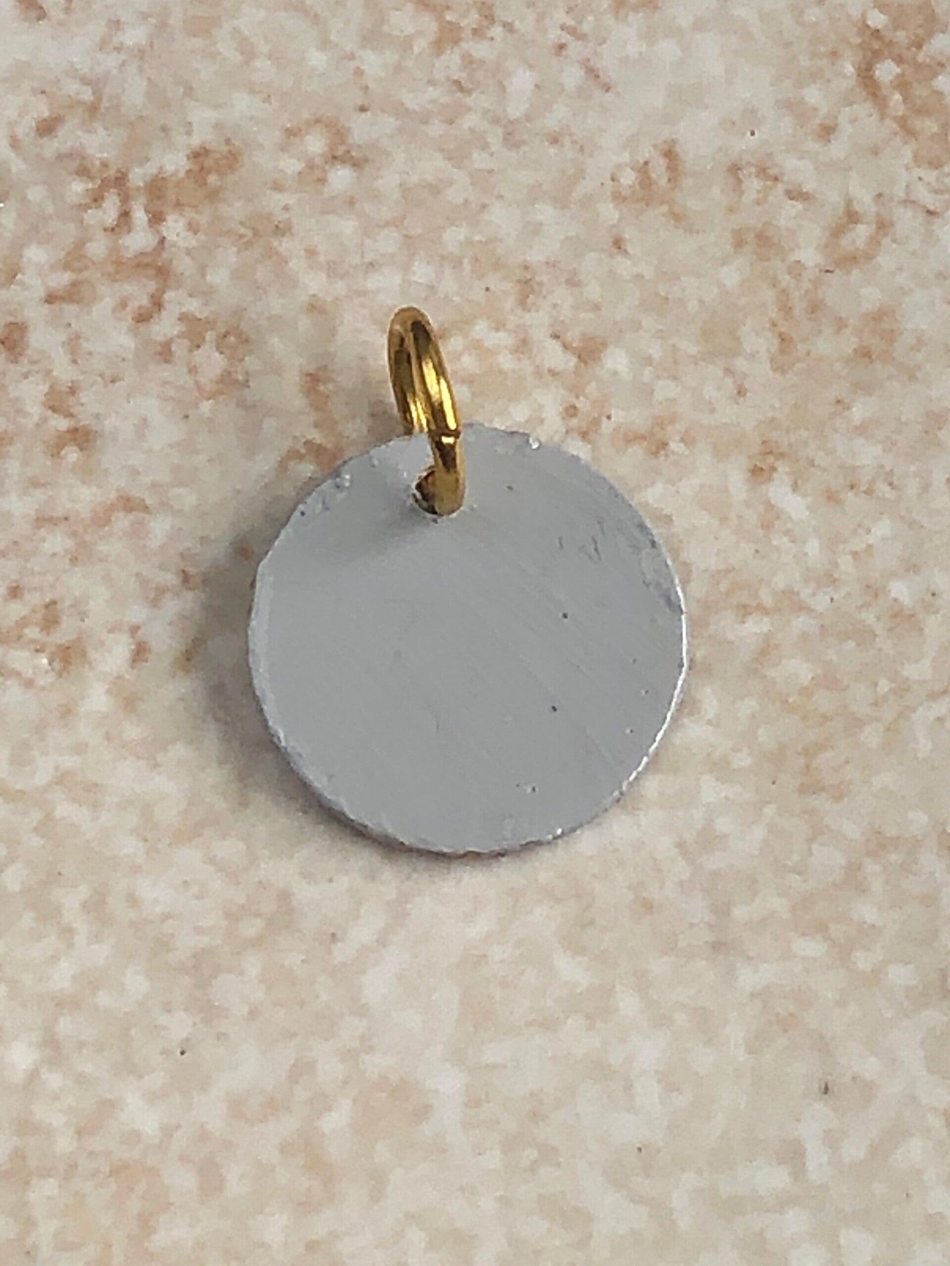Der Anhänger ist handbemalt und hat einen Durchmesser von 1,3 cm.