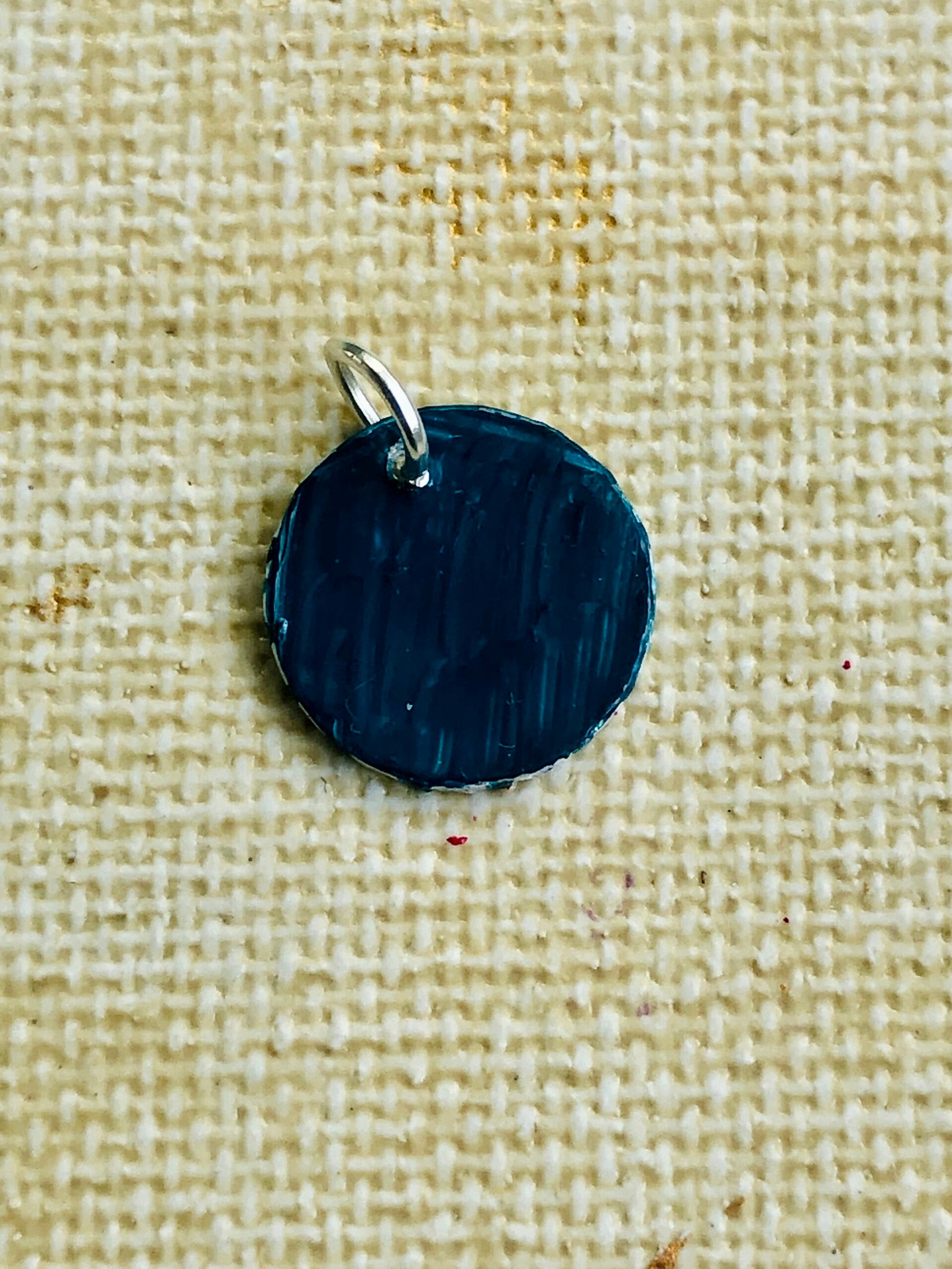 Der Anhänger ist handbemalt und hat einen Durchmesser von 1,3 cm.
