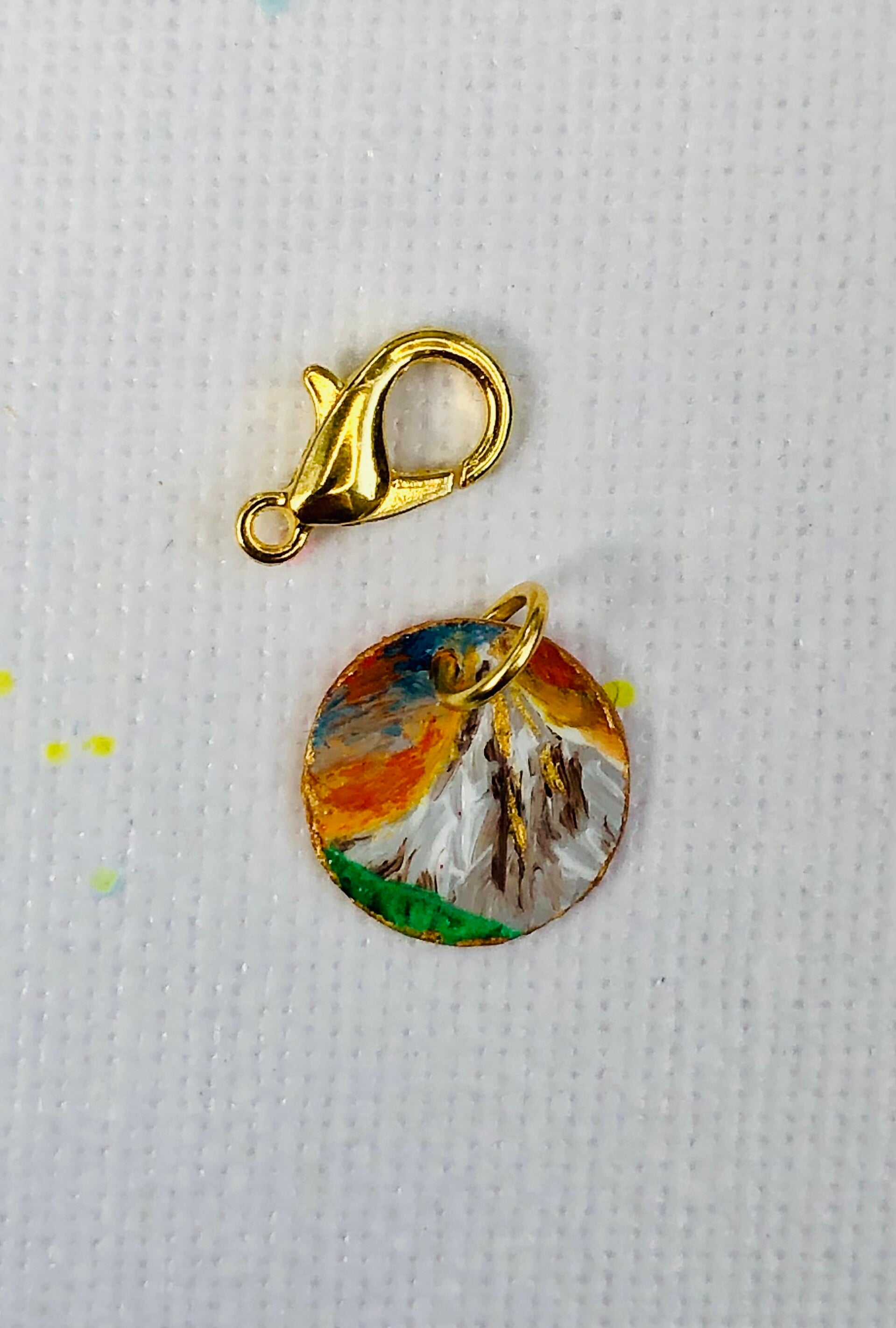 Der Anhänger ist handbemalt und hat einen Durchmesser von 1,3 cm.