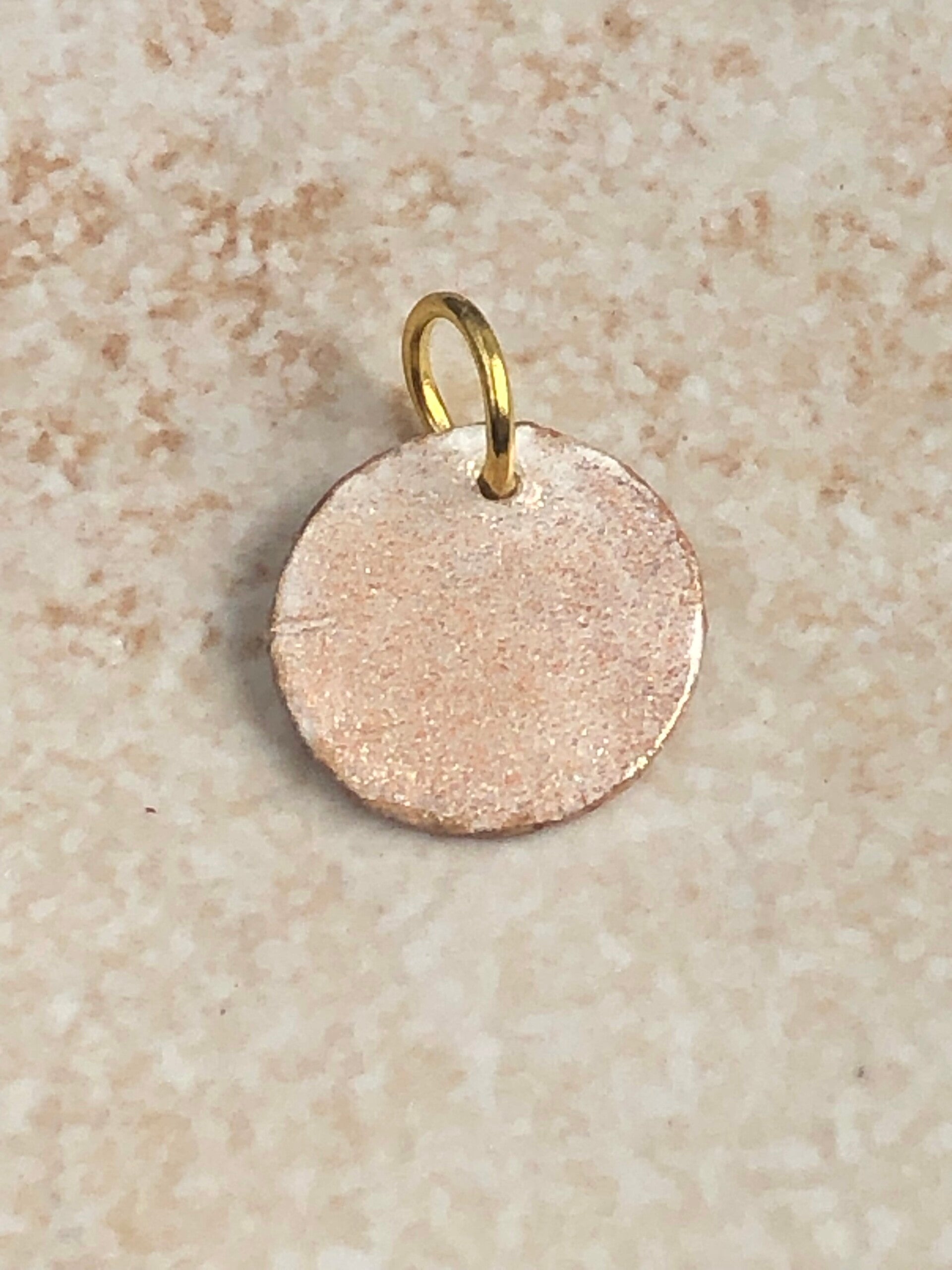 Der Anhänger ist handbemalt und hat einen Durchmesser von 1,3 cm.