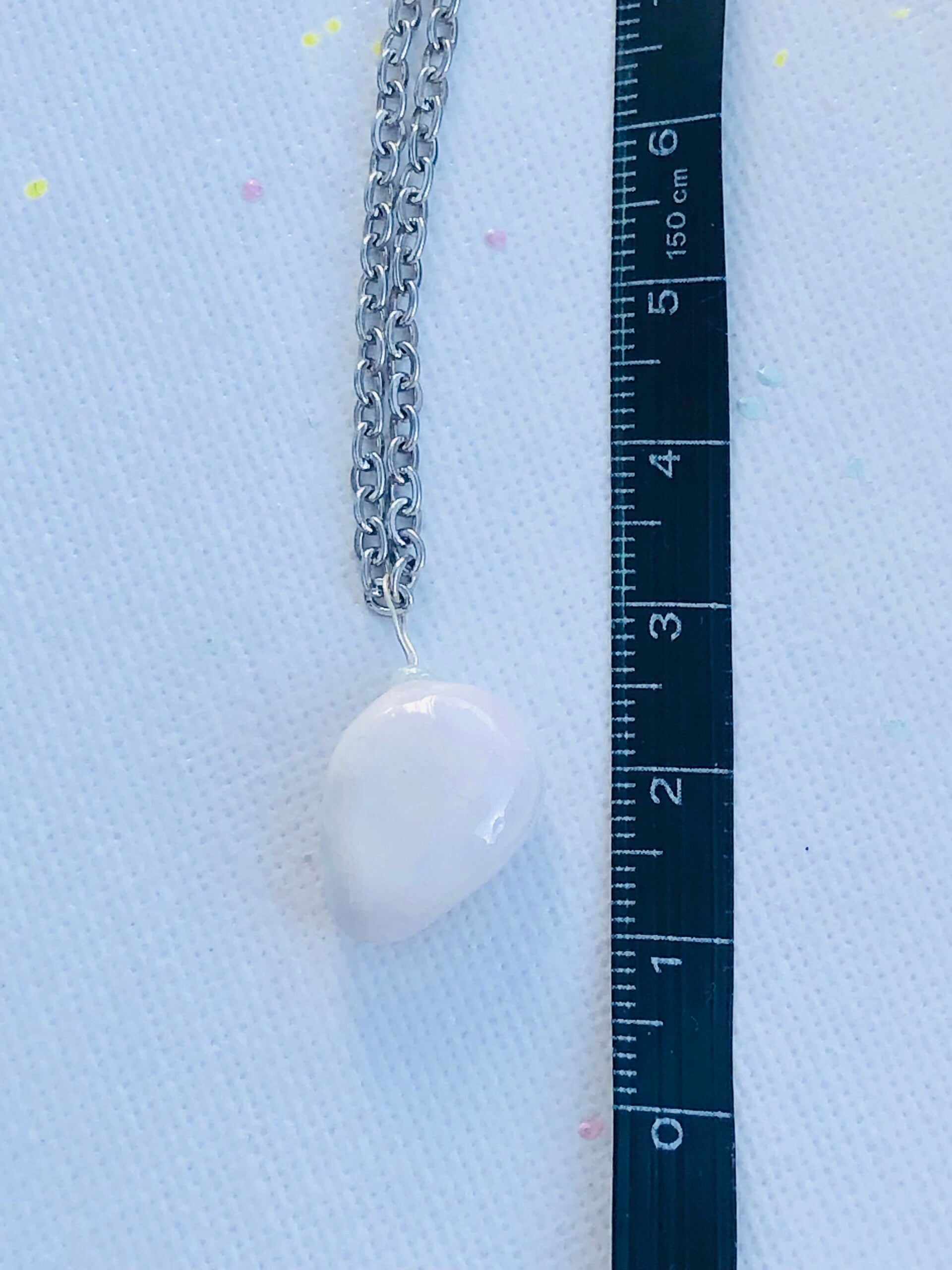 Die filigrane Kette ist aus Edelstahl und 50cm lang. Der Anhänger kann auch ausgefädelt werden und variabel an anderen Ketten getragen werden.